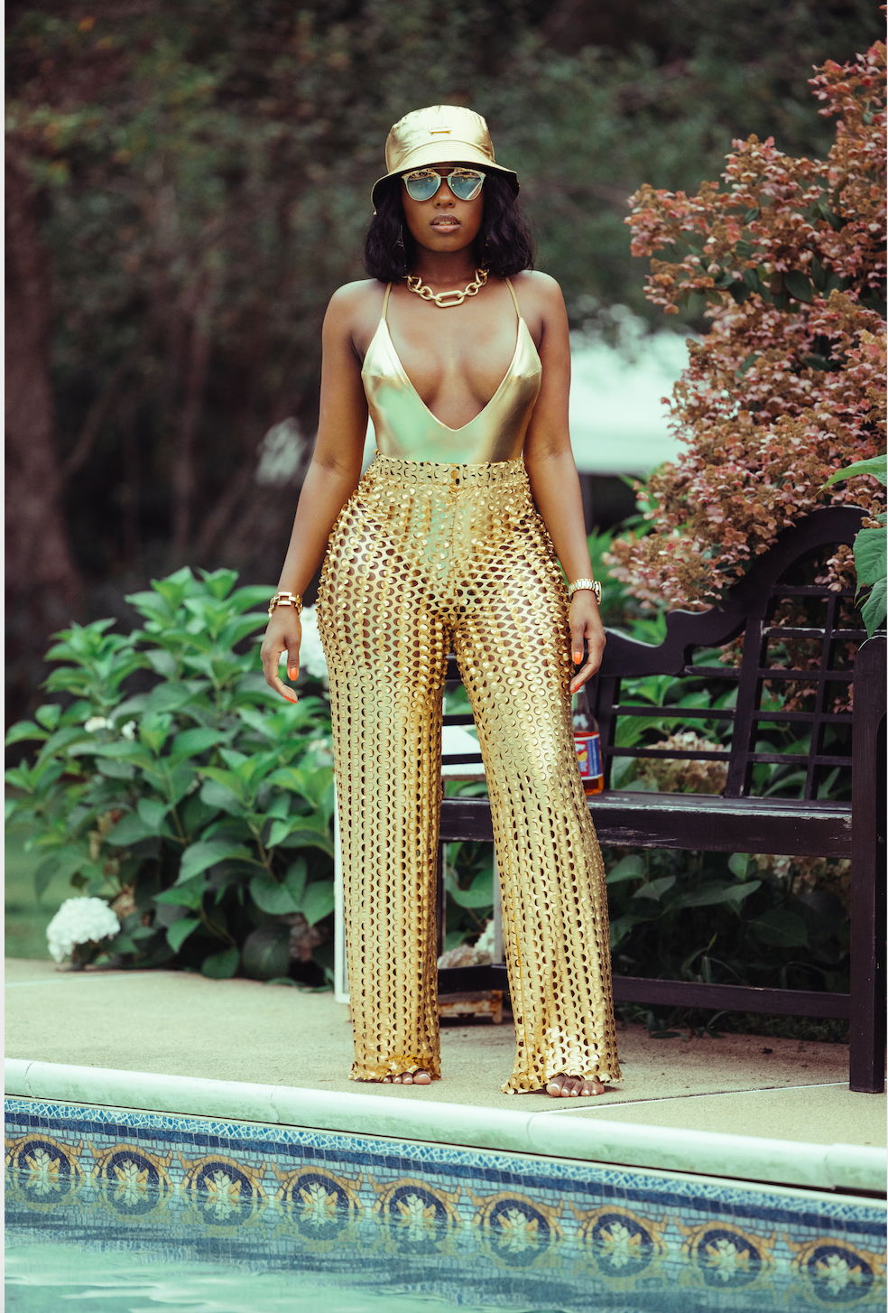 The 24 Karat Gold pants is the ultimate show stopper! Pair w/ with our 24 Karat Bodysuit or a black bodysuit and be best dressed in the room. A Must Have!